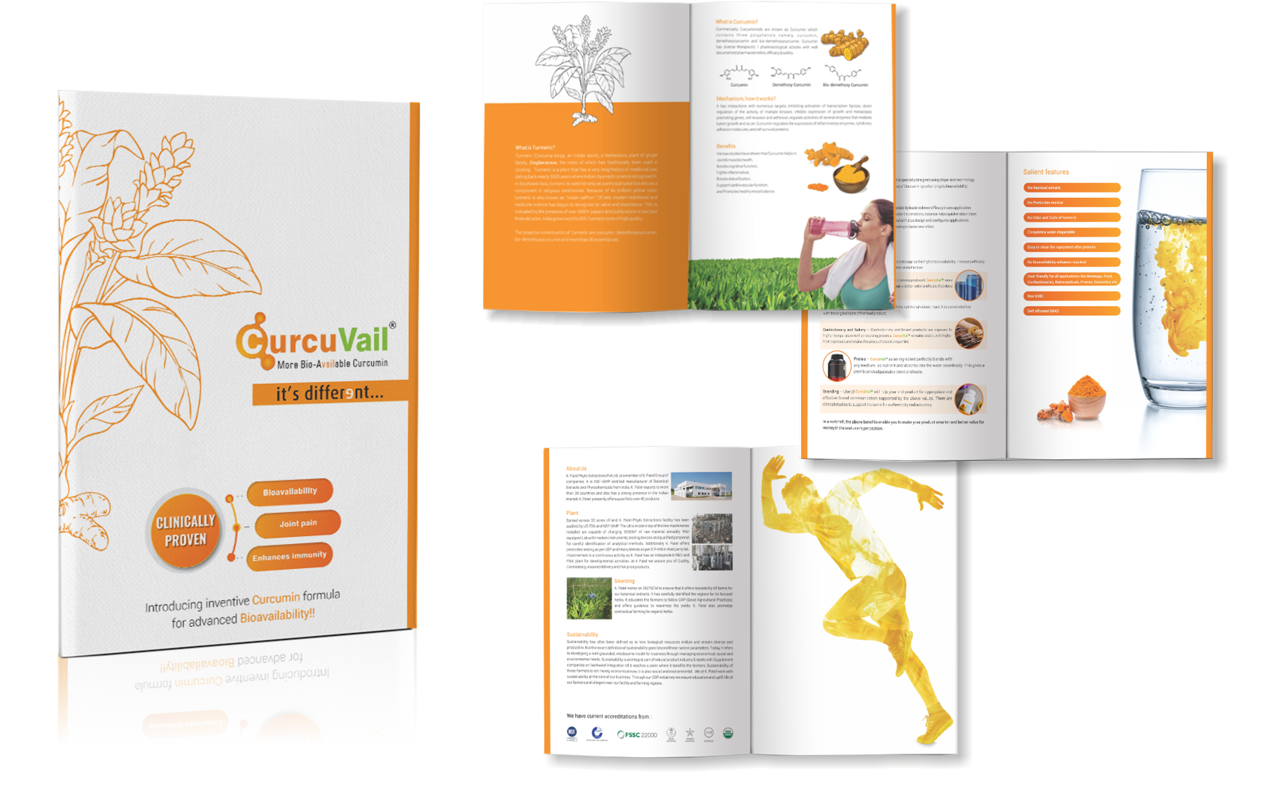 From the initial brief, we created a concept of a human body and the effective work of Curcuvail that leads in building up the immunity as a result a healthy person. For an authentic and traditional visual effect we used a curcumin plant vector with a perfect designing blend, a healing deep orange with a white balance. This visualization was used effectively across catalogues, exhibition panels and digital media like emailers and powerpoint presentation.